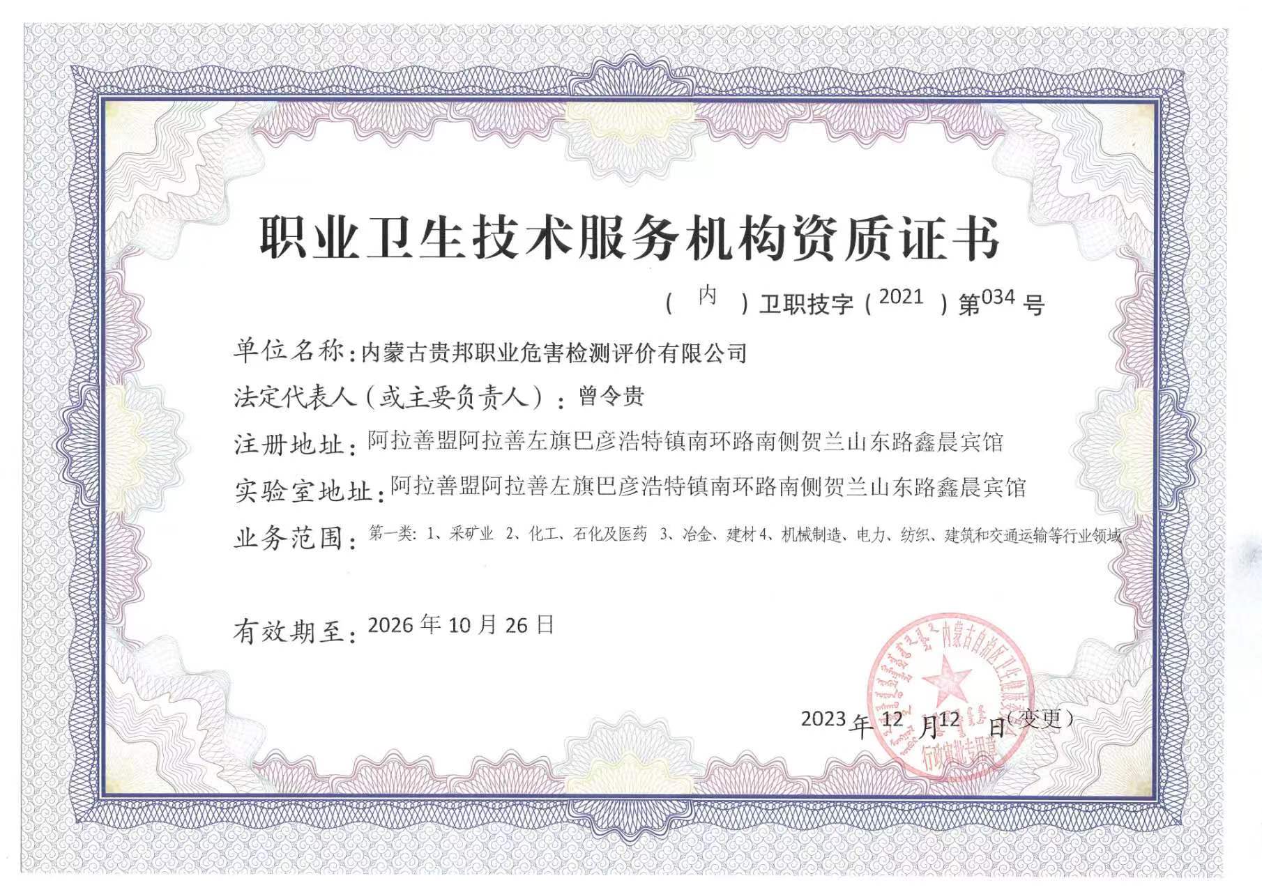 內(nèi)蒙古貴邦職業(yè)危害檢測評價有限公司(m.fsredotsoft.com)版權(quán)所有 地址:阿拉善盟阿拉善左旗賀蘭山東路加氣站南側(cè)鑫晨賓館一樓 24小時熱線:18947252199 蒙ICP備:蒙ICP備21006705號-1 公安備案號:50011802010212